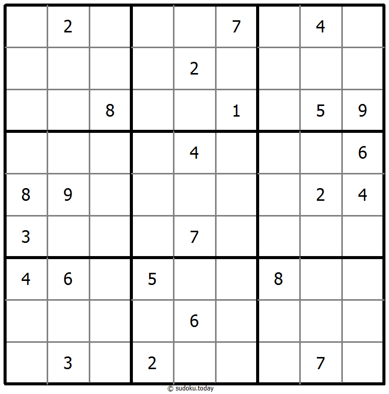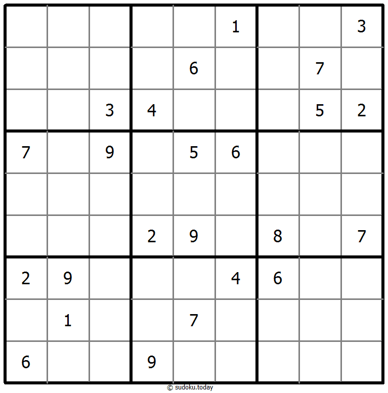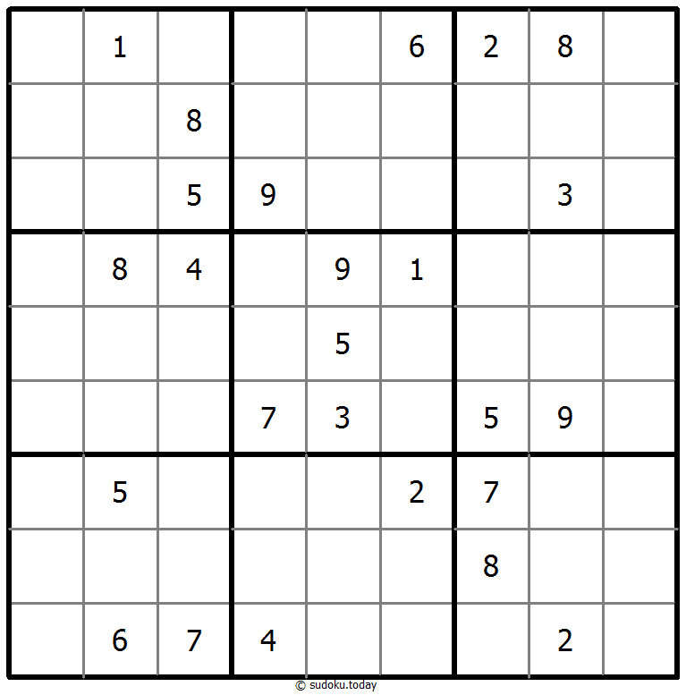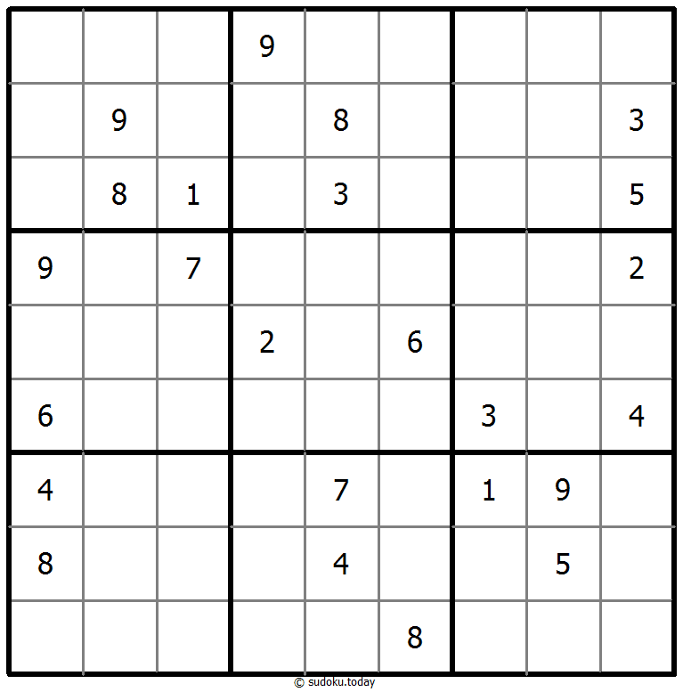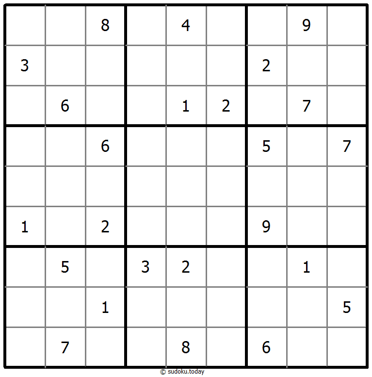 - Place a digit from 1 to 9 into each of the empty squares so that each digit appears exactly once in each of the rows, columns and the nine outlined 3x3 regions.