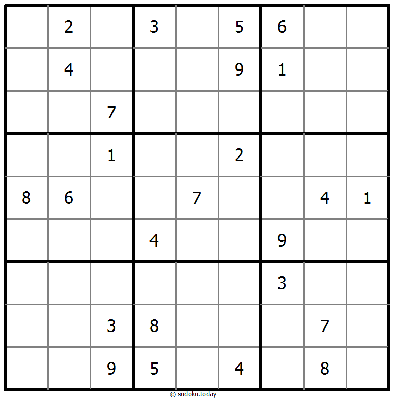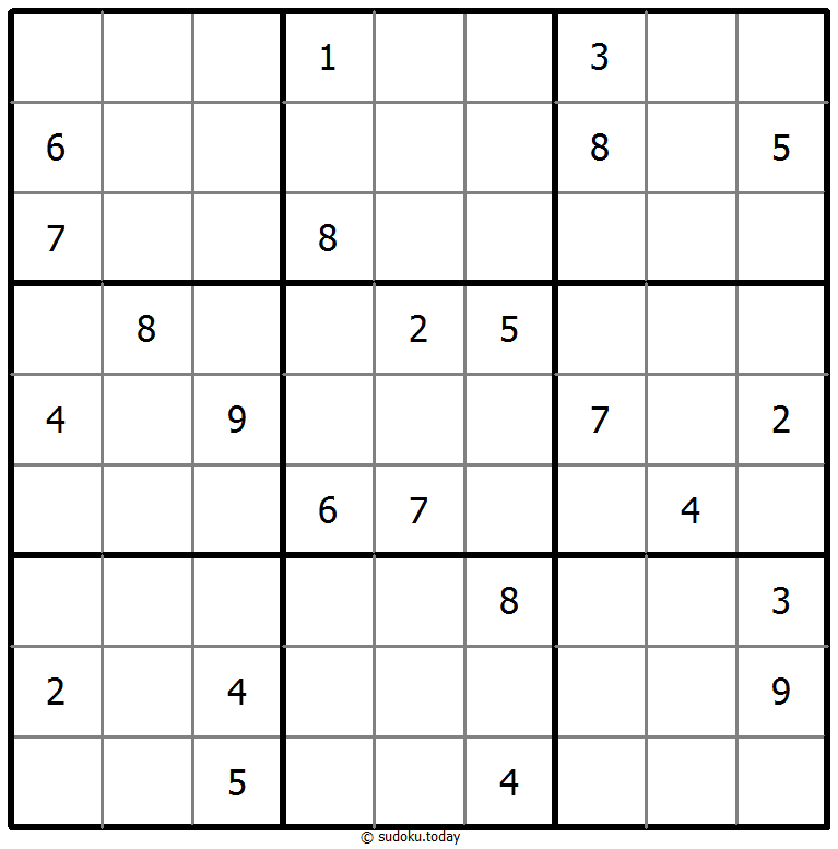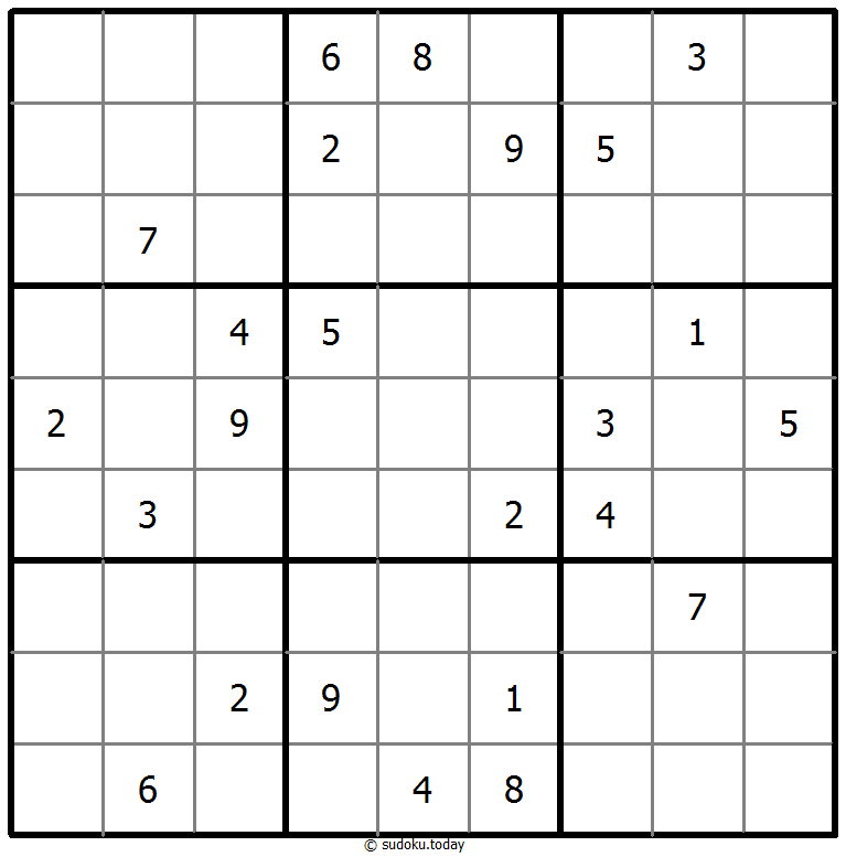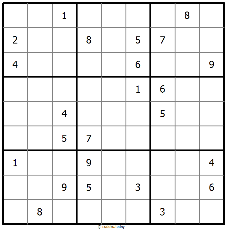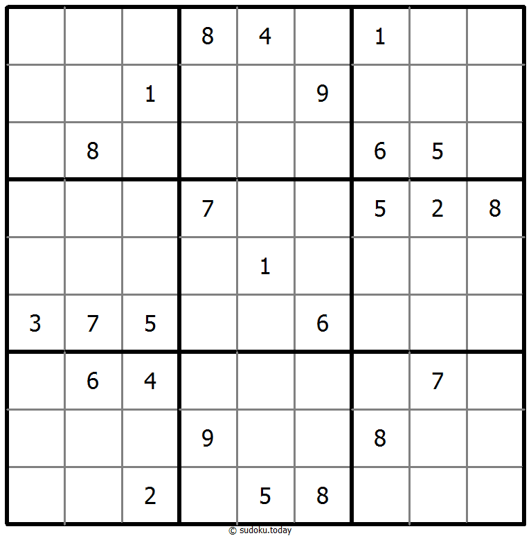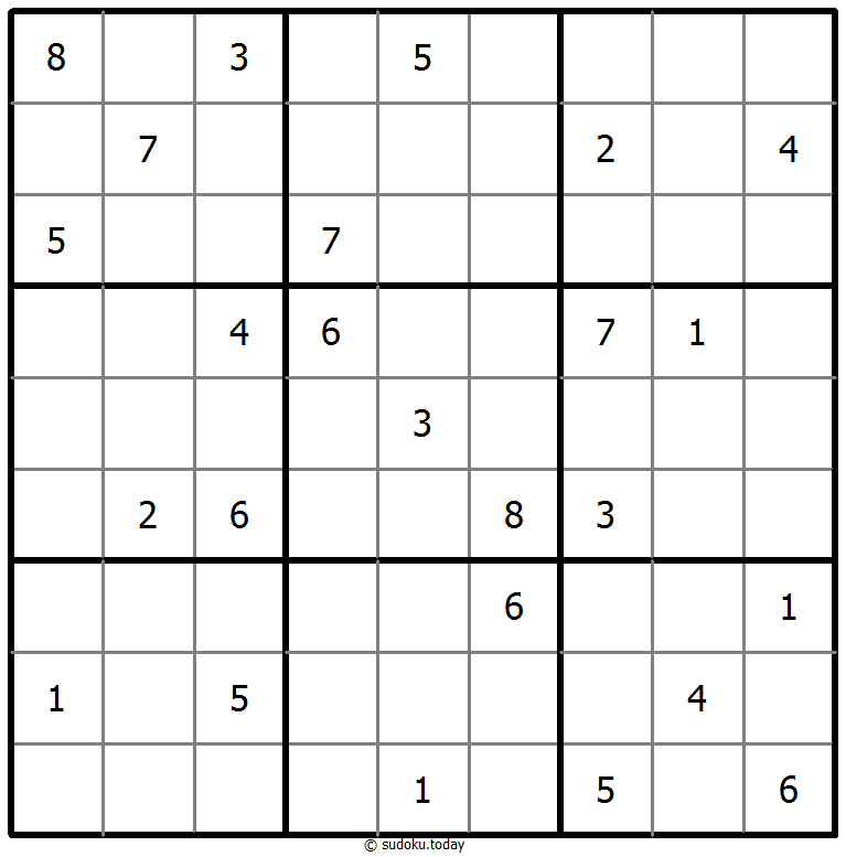 - Place a digit from 1 to 9 into each of the empty squares so that each digit appears exactly once in each of the rows, columns and the nine outlined 3x3 regions.