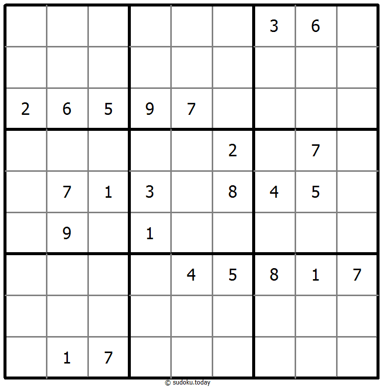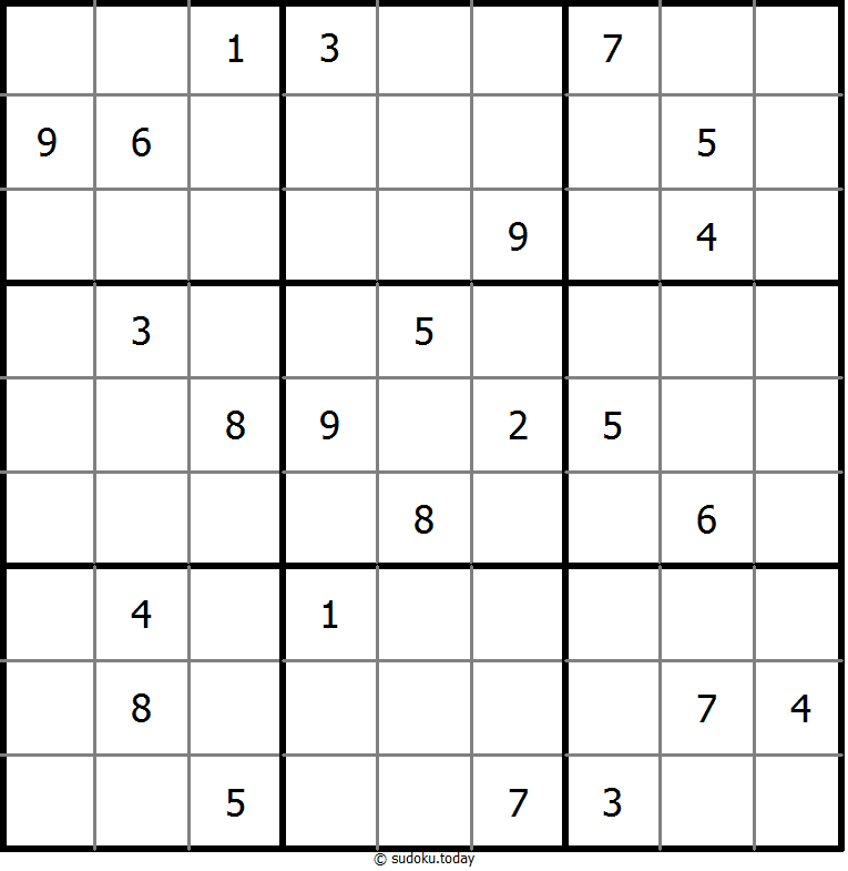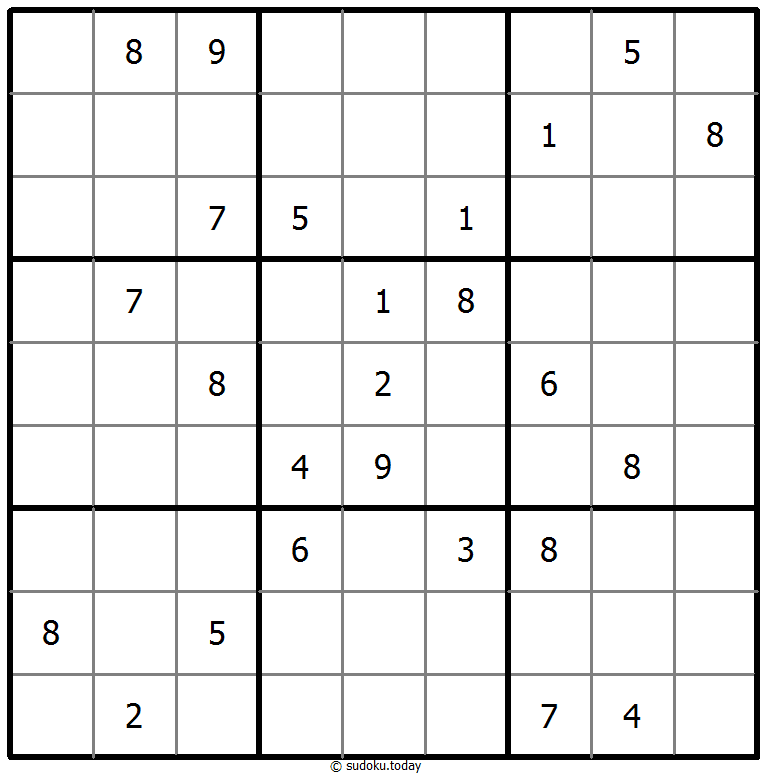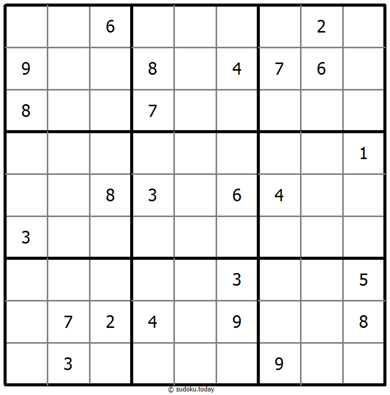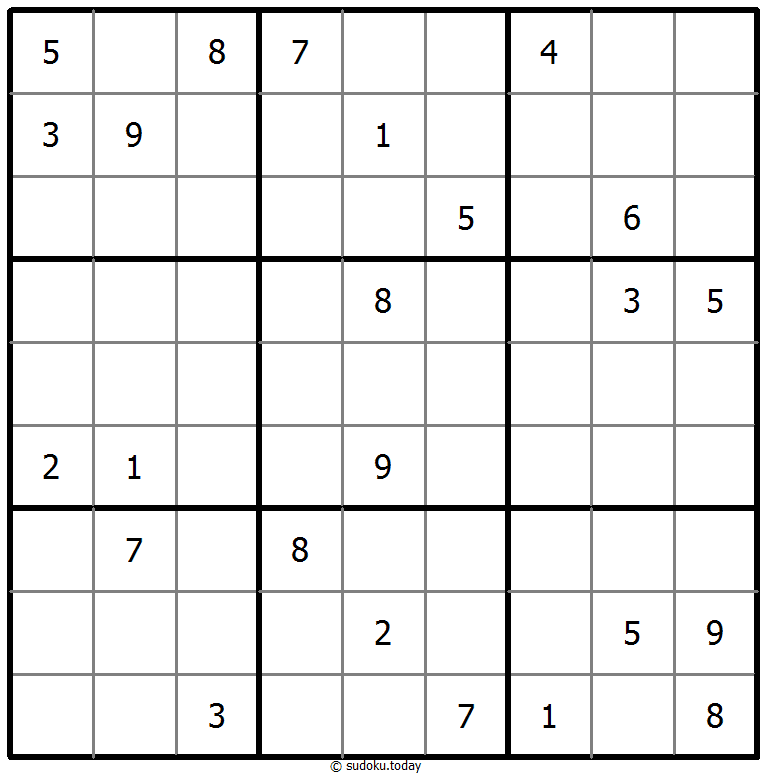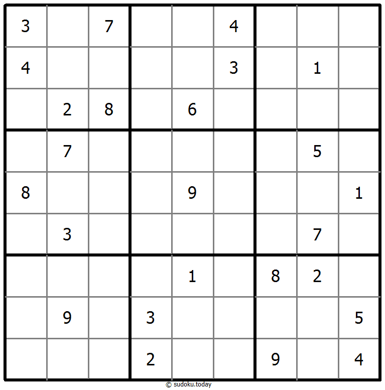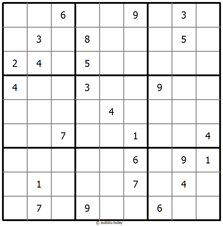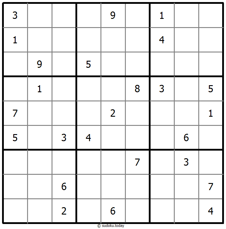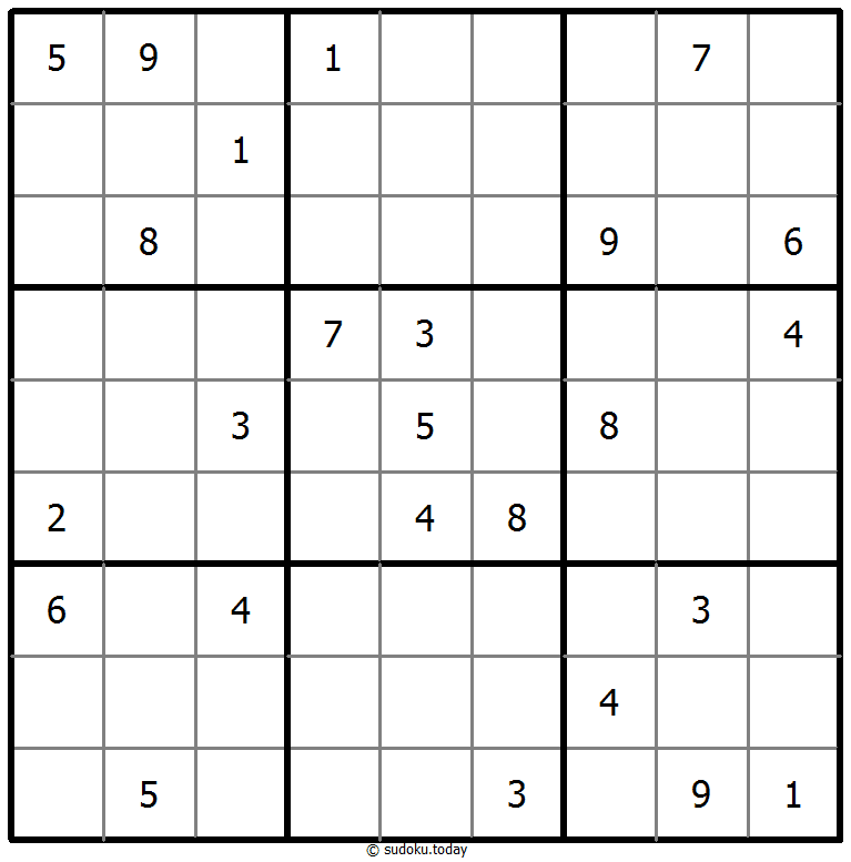 - Tempatkan angka dari 1 hingga 9 di setiap kotak kosong sehingga setiap angka muncul tepat satu kali di setiap baris, kolom, dan 9 wilayah 3x3.