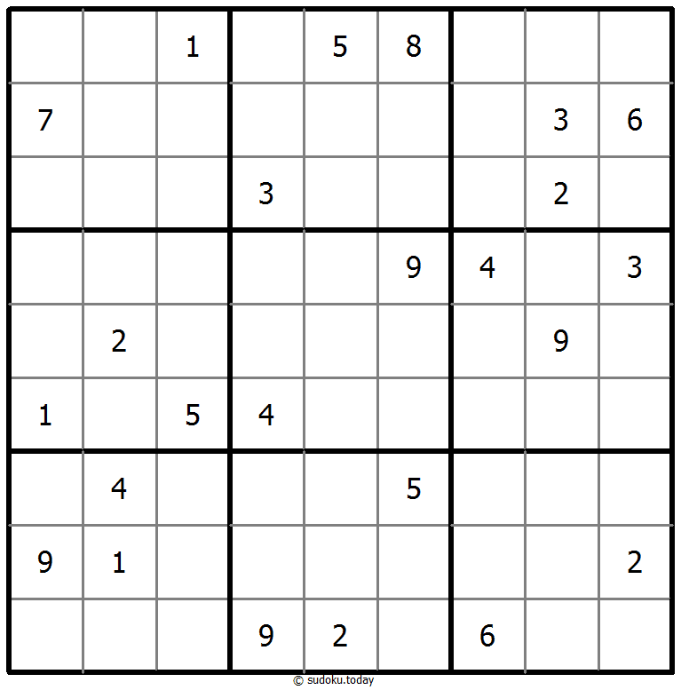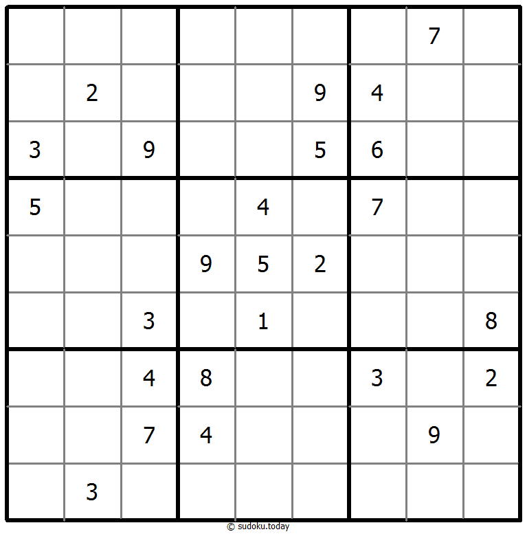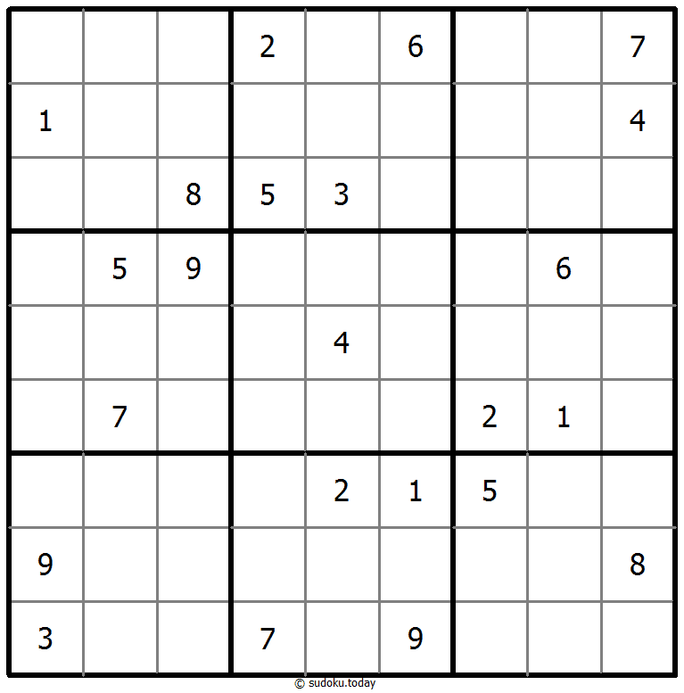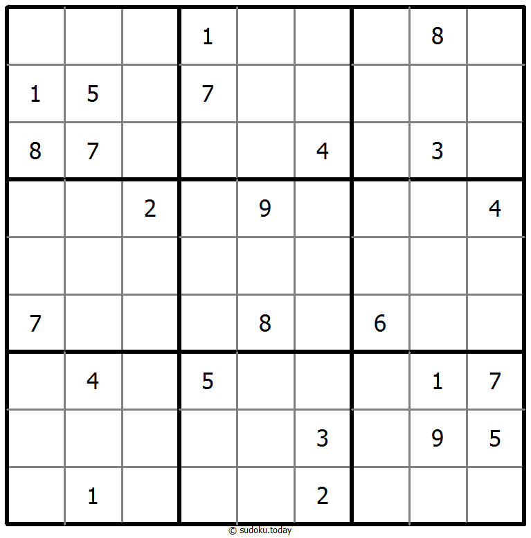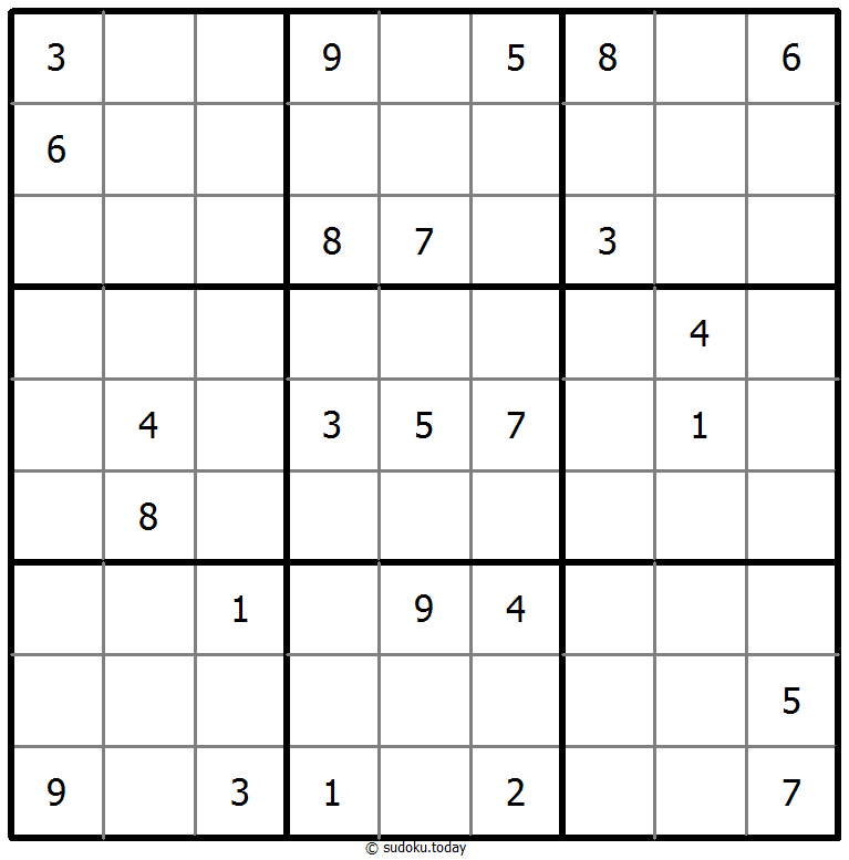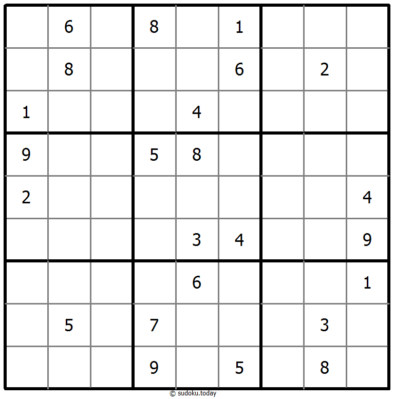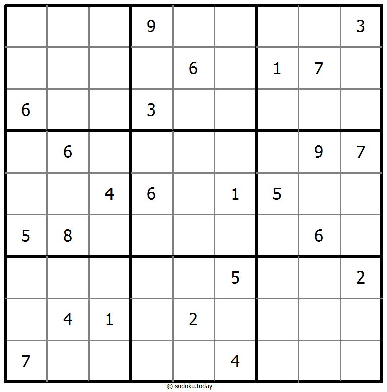 Tempatkan angka dari 1 hingga 9 di setiap kotak kosong sehingga setiap angka muncul tepat satu kali di setiap baris, kolom, dan 9 wilayah 3x3.