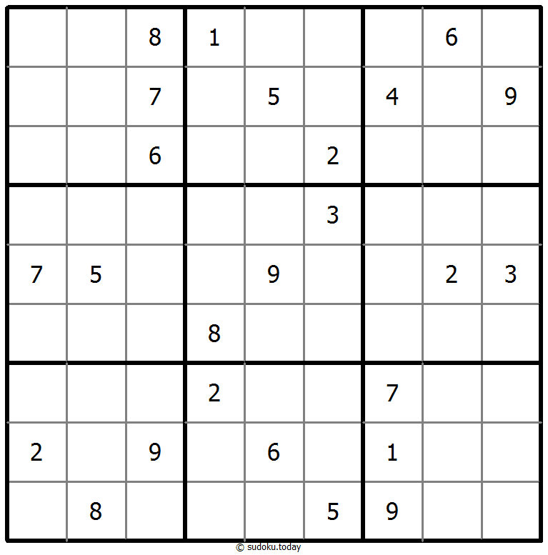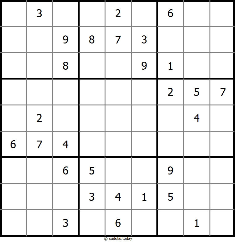 - Inserisci i numeri da 1 a 9 in ogni cella vuota in modo che ogni numero appaia esattamente una volta in ogni riga, colonna e regione 3x3.