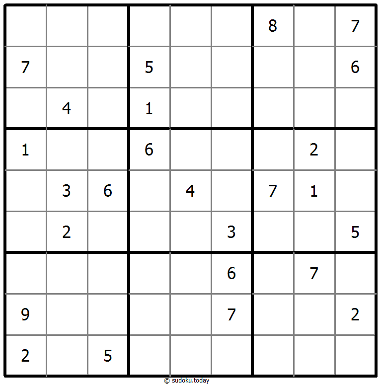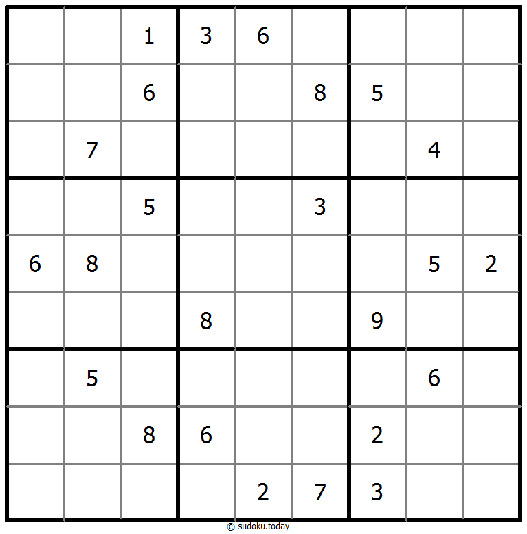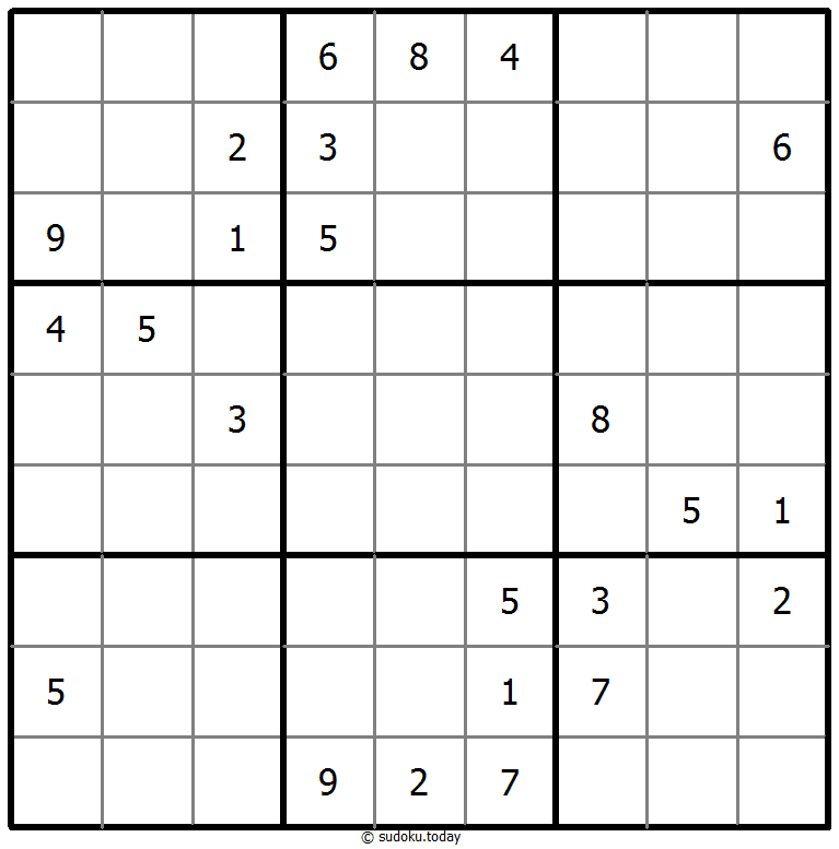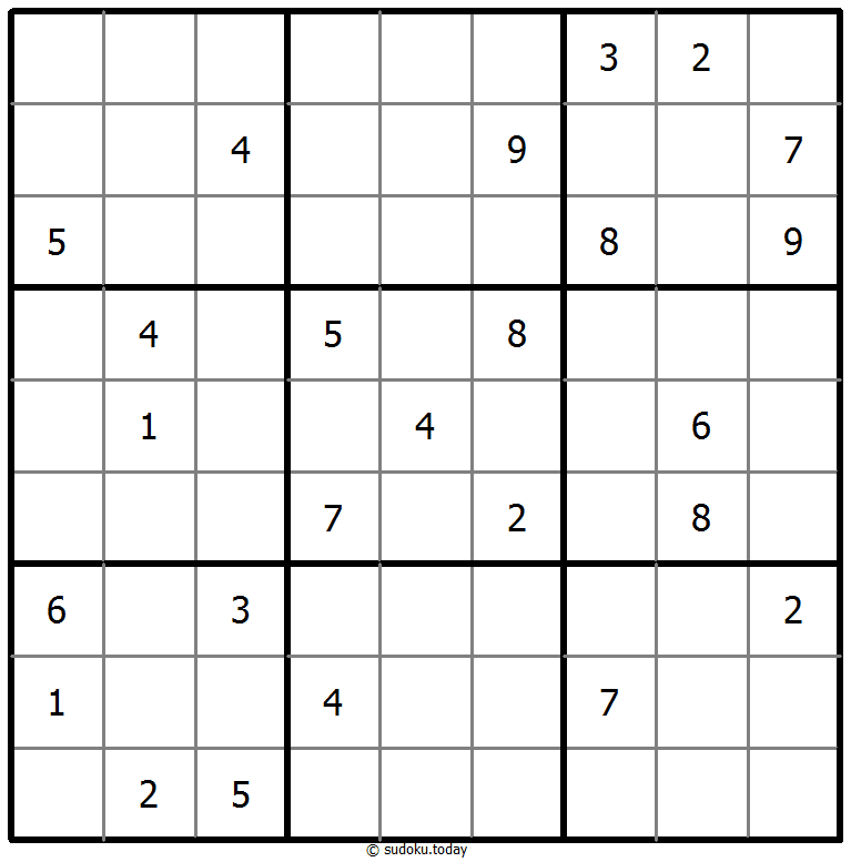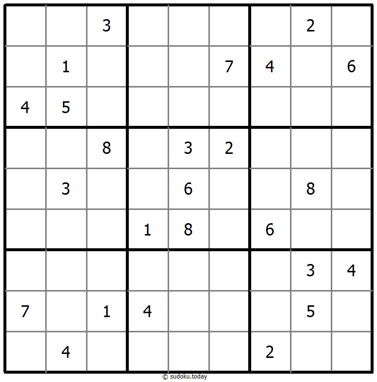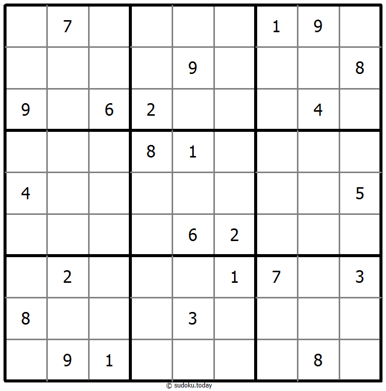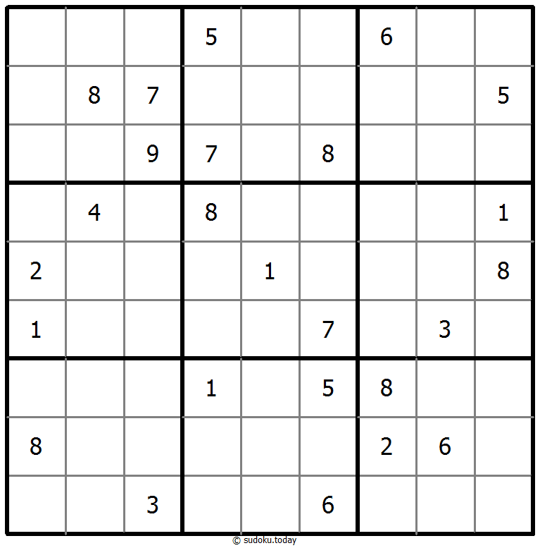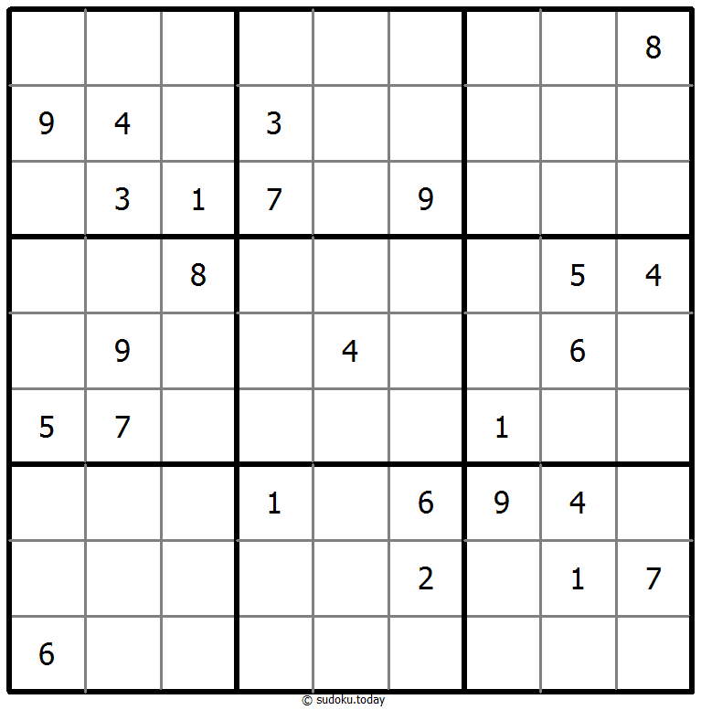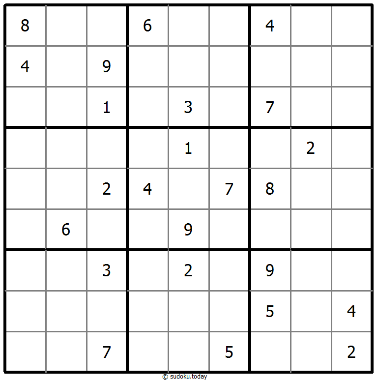 1부터 9까지의 숫자를 각 빈 칸에 넣어, 각 숫자가 각 행, 열, 그리고 9개의 3x3 영역에 정확히 한 번씩 등장하도록 합니다.