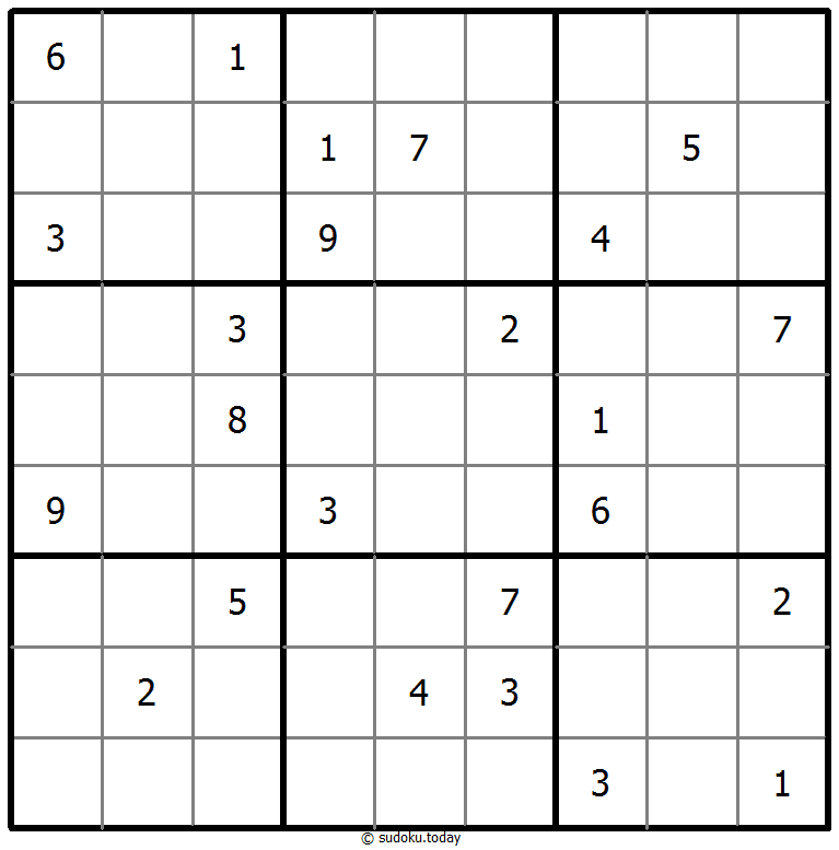 - 1부터 9까지의 숫자를 각 빈 칸에 넣어, 각 숫자가 각 행, 열, 그리고 9개의 3x3 영역에 정확히 한 번씩 등장하도록 합니다.