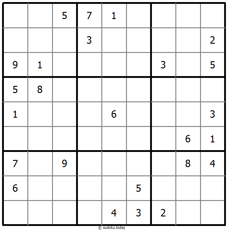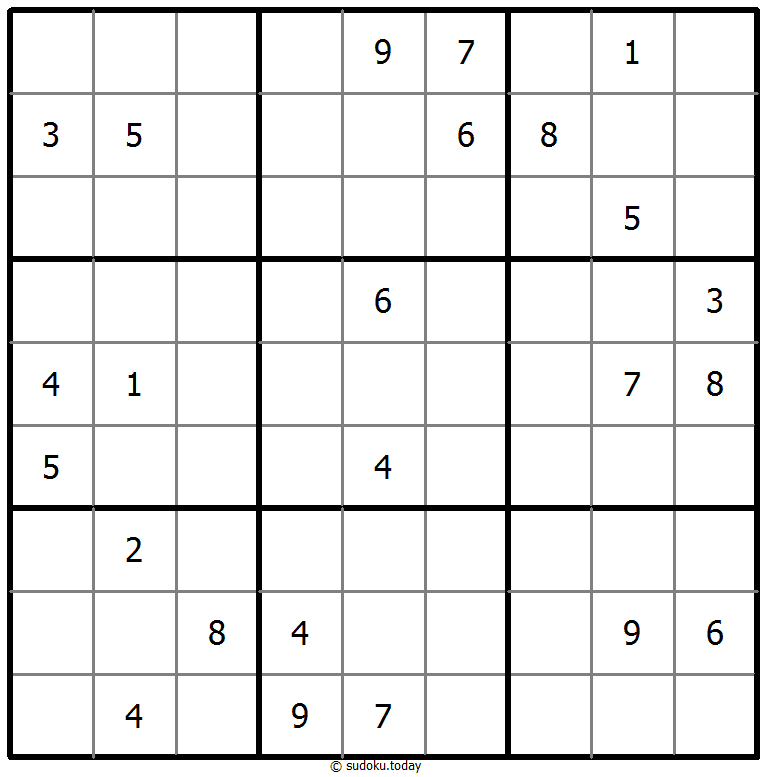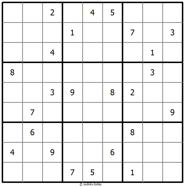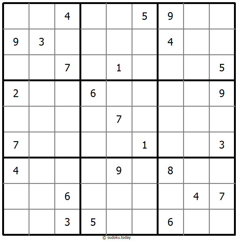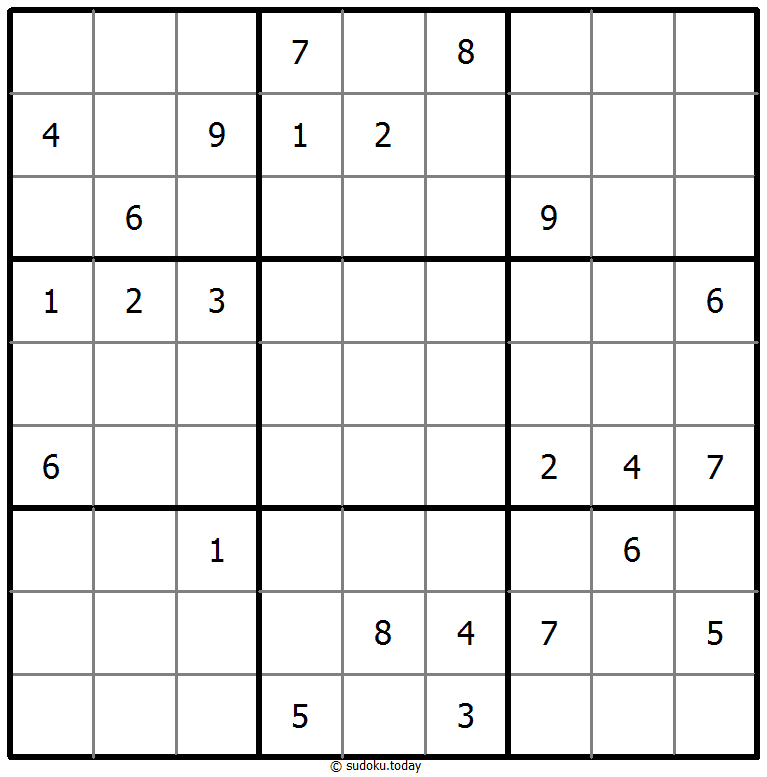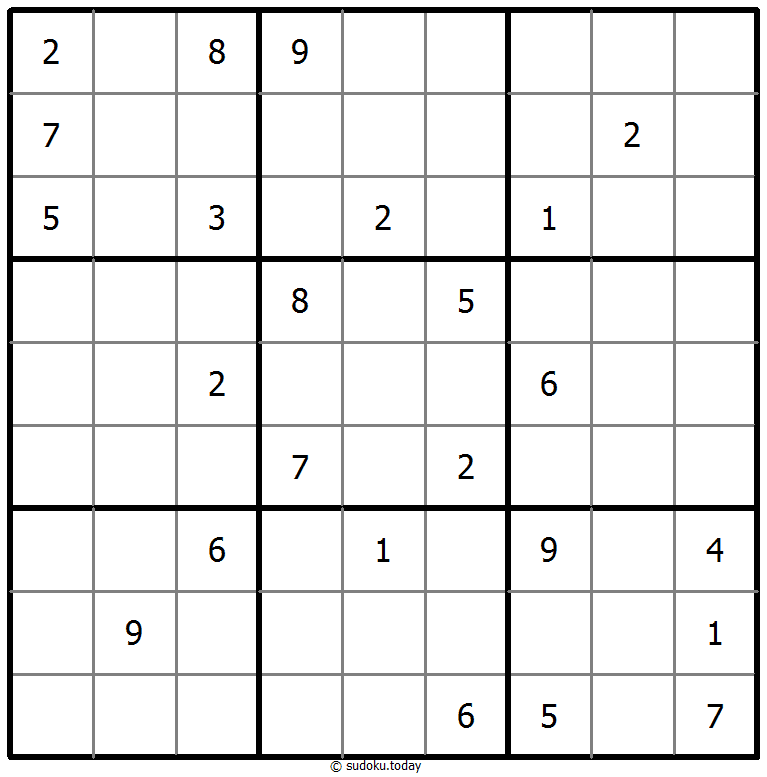 ใส่ตัวเลข 1 ถึง 9 ลงในแต่ละช่องว่าง เพื่อให้แต่ละตัวเลขปรากฏเพียงครั้งเดียวในแต่ละแถว คอลัมน์ และในแต่ละพื้นที่ 3x3 ทั้ง 9 พื้นที่
