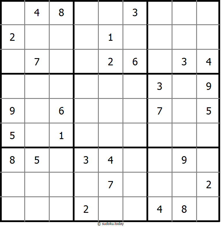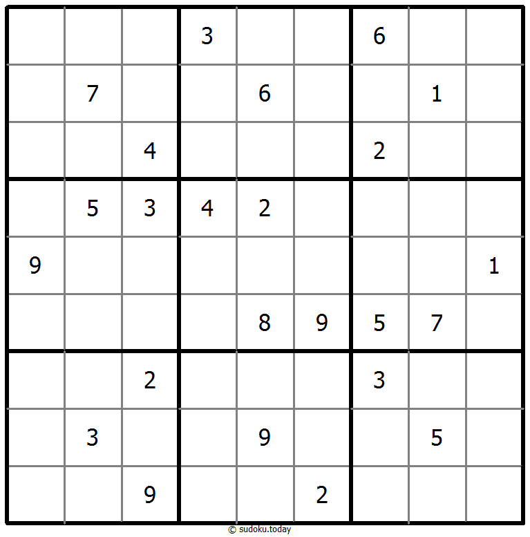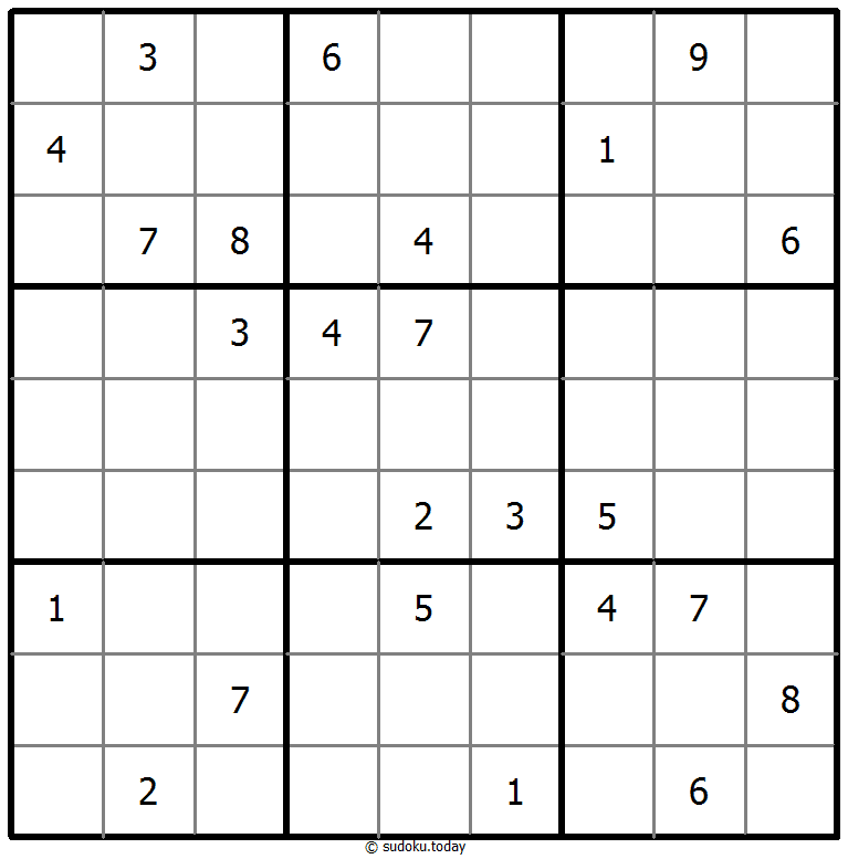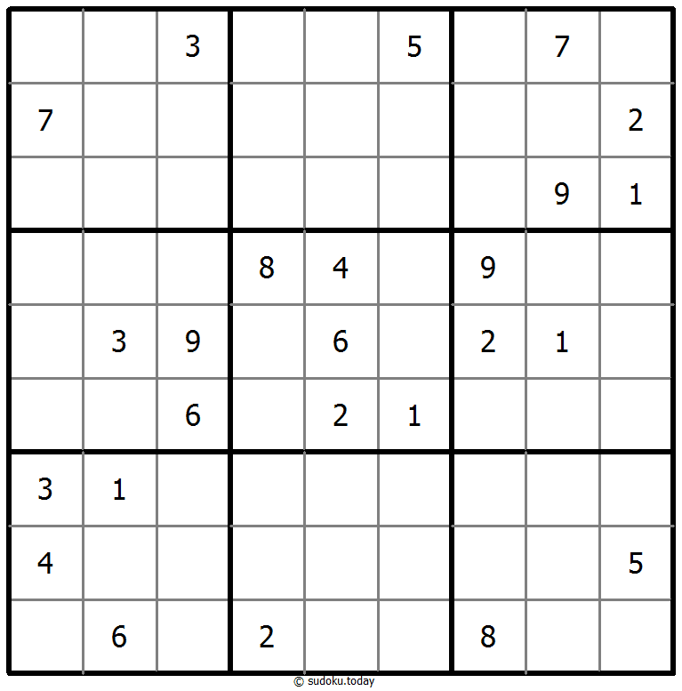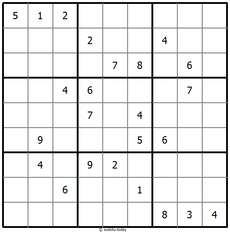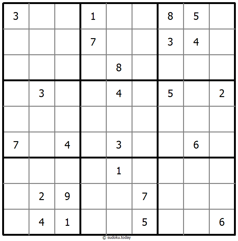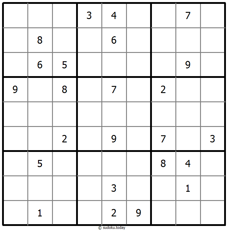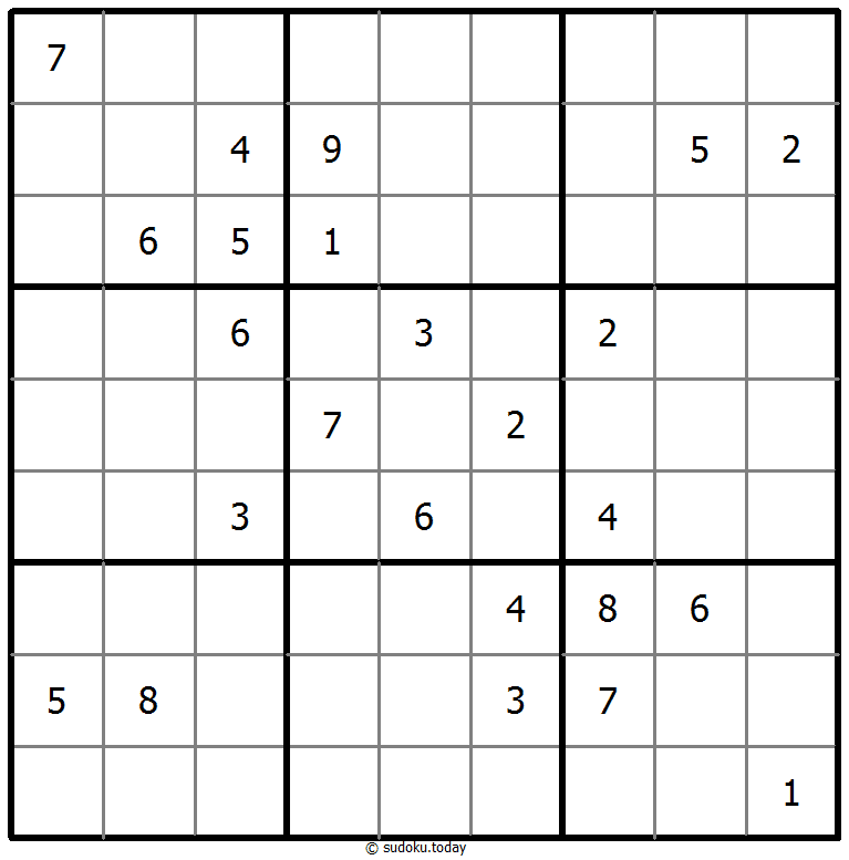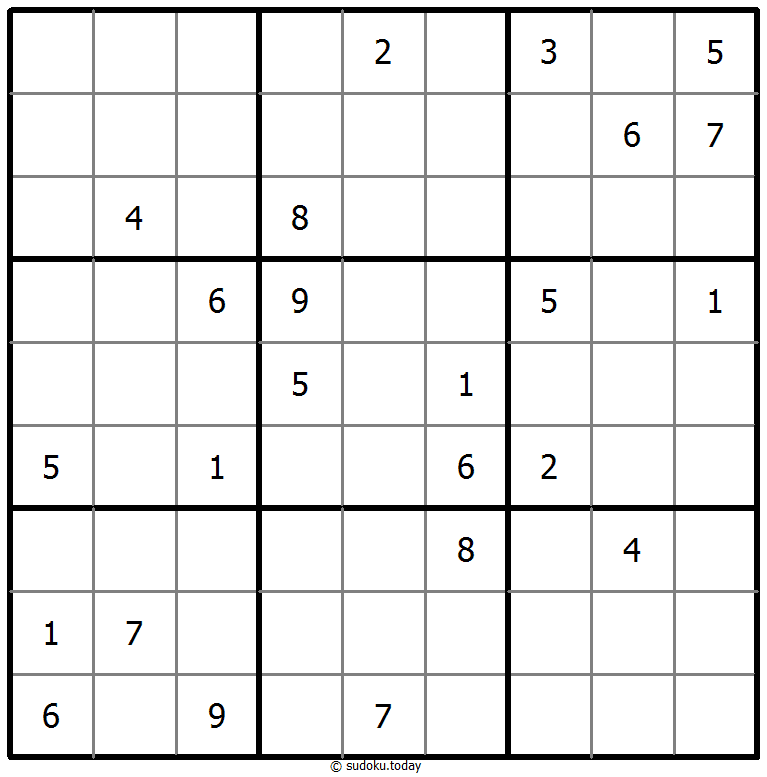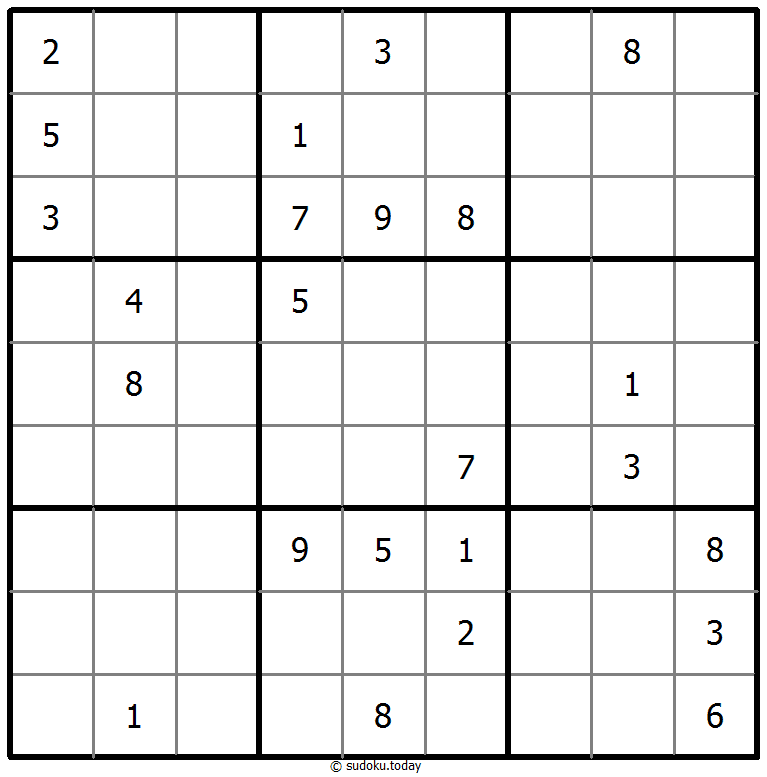 Заповніть кожну порожню клітинку цифрами від 1 до 9 так, щоб кожне число з’являлося один раз у кожному рядку, стовпчику і 3×3 блоці.