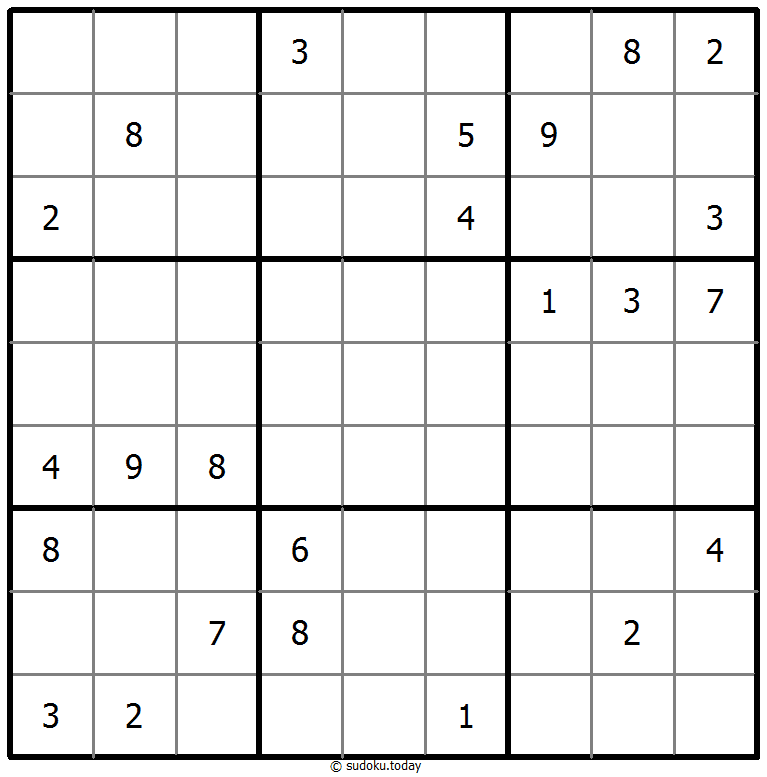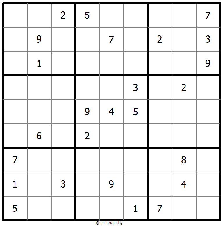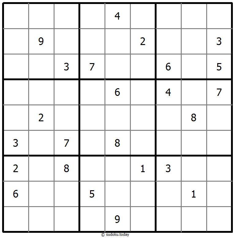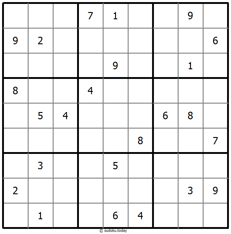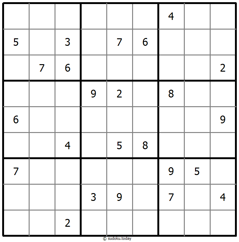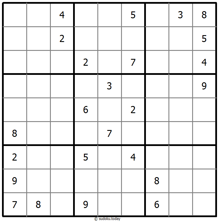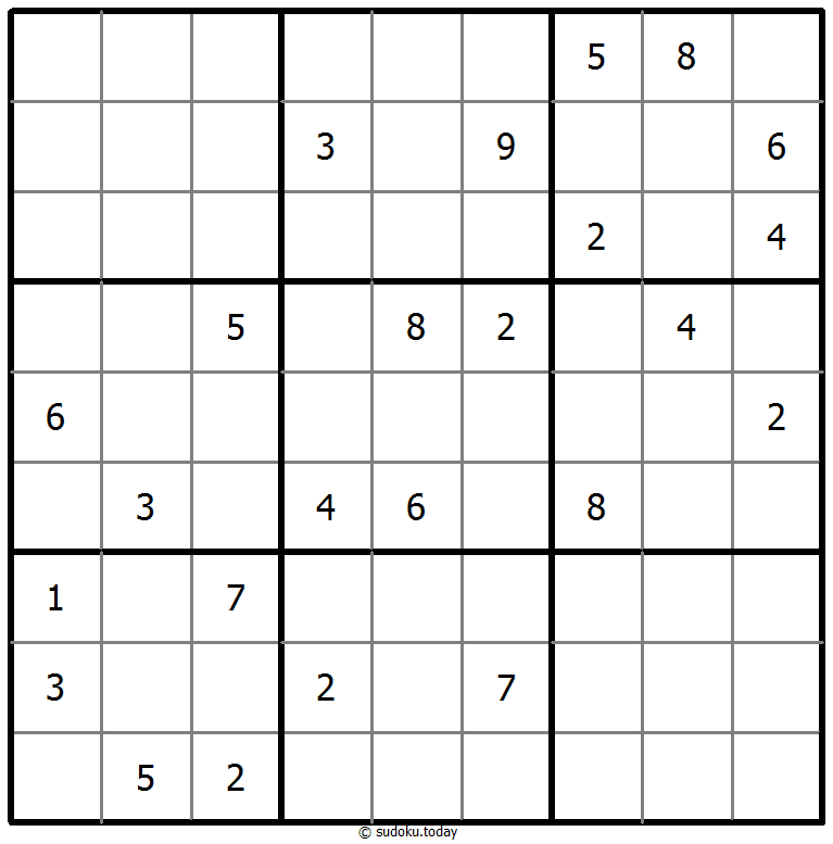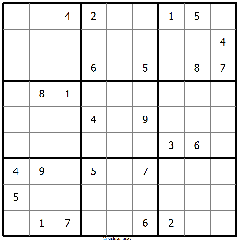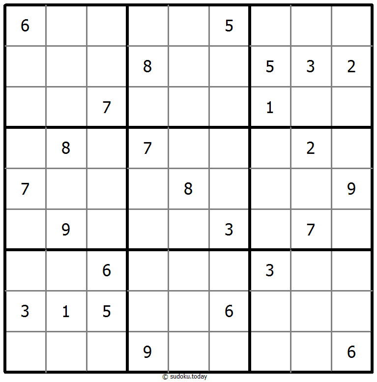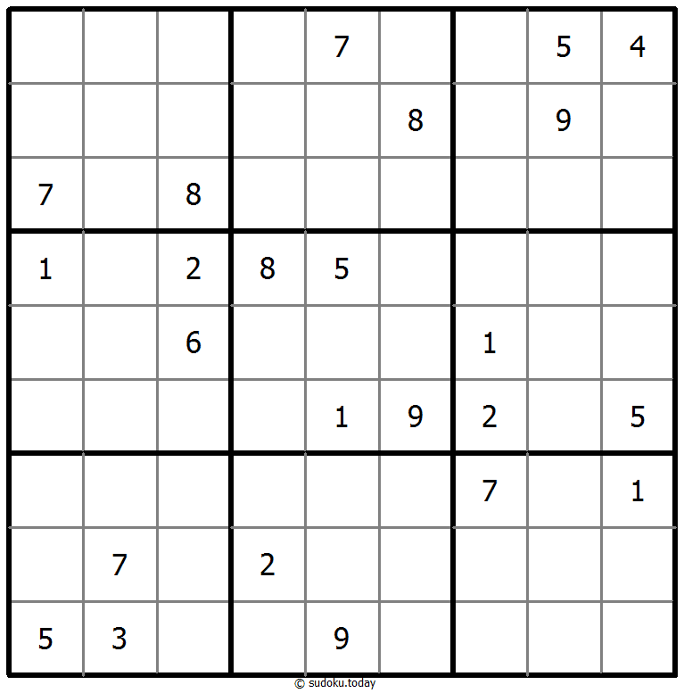 Заповніть кожну порожню клітинку цифрами від 1 до 9 так, щоб кожне число з’являлося один раз у кожному рядку, стовпчику і 3×3 блоці.