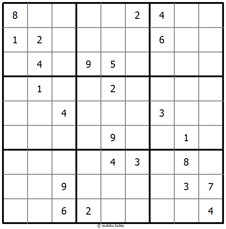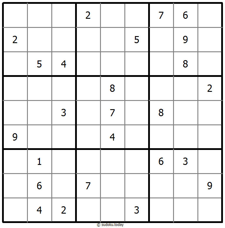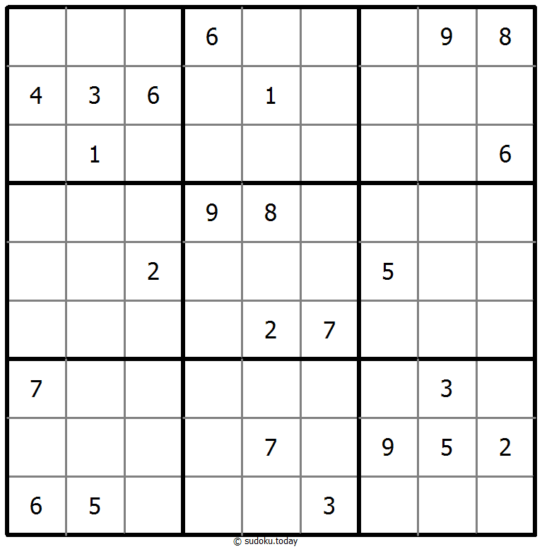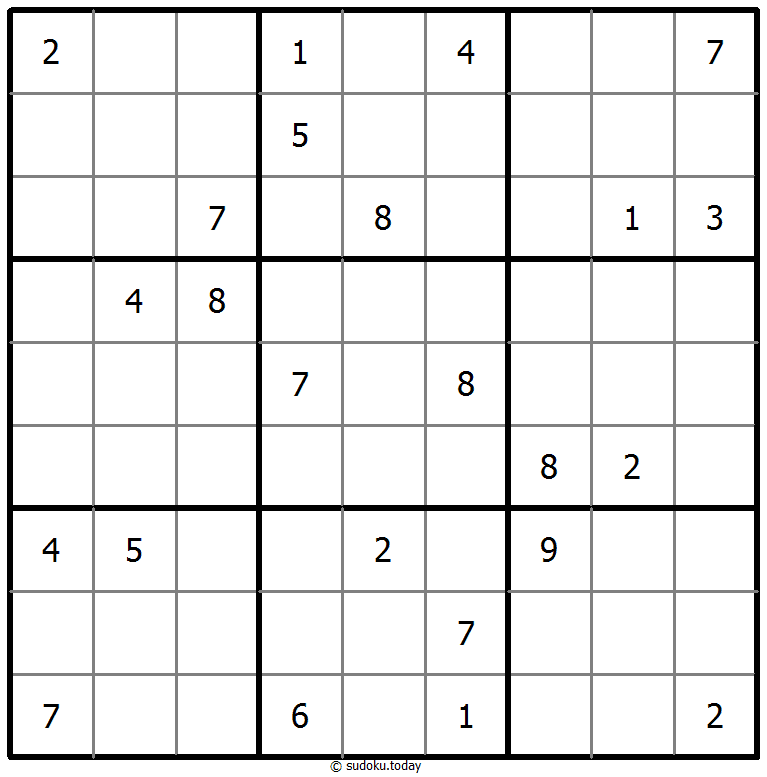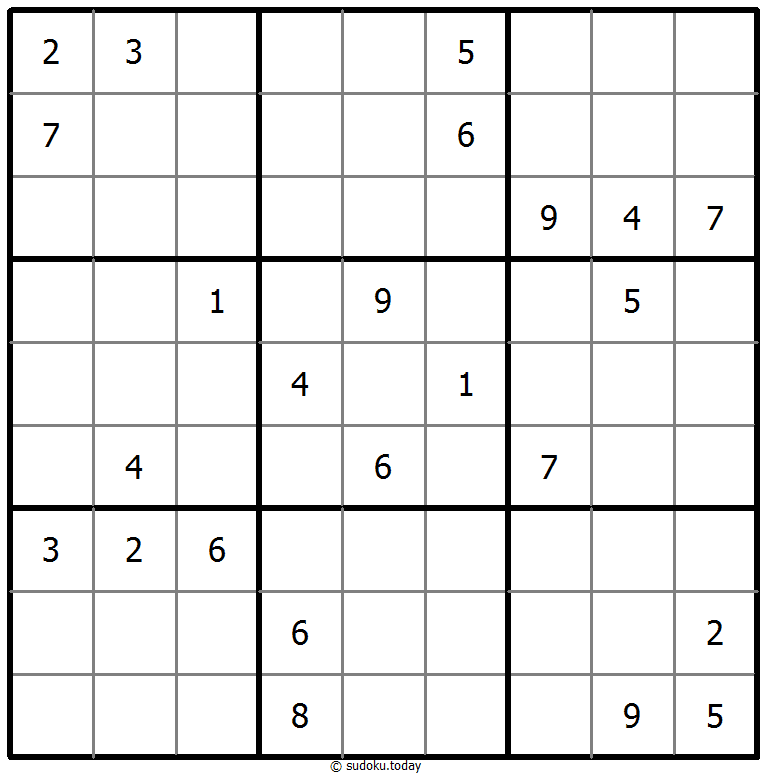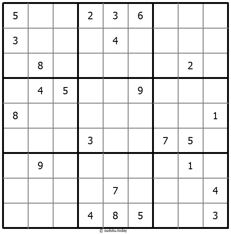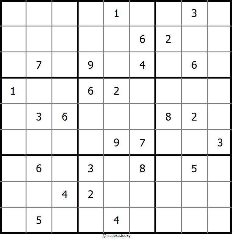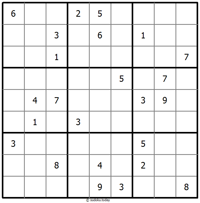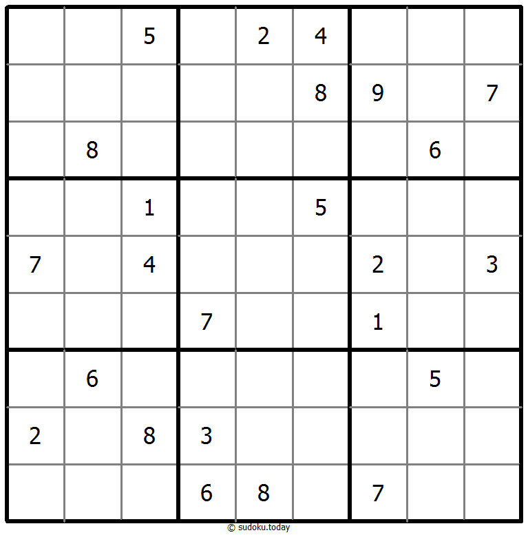 Заповніть кожну порожню клітинку цифрами від 1 до 9 так, щоб кожне число з’являлося один раз у кожному рядку, стовпчику і 3×3 блоці.